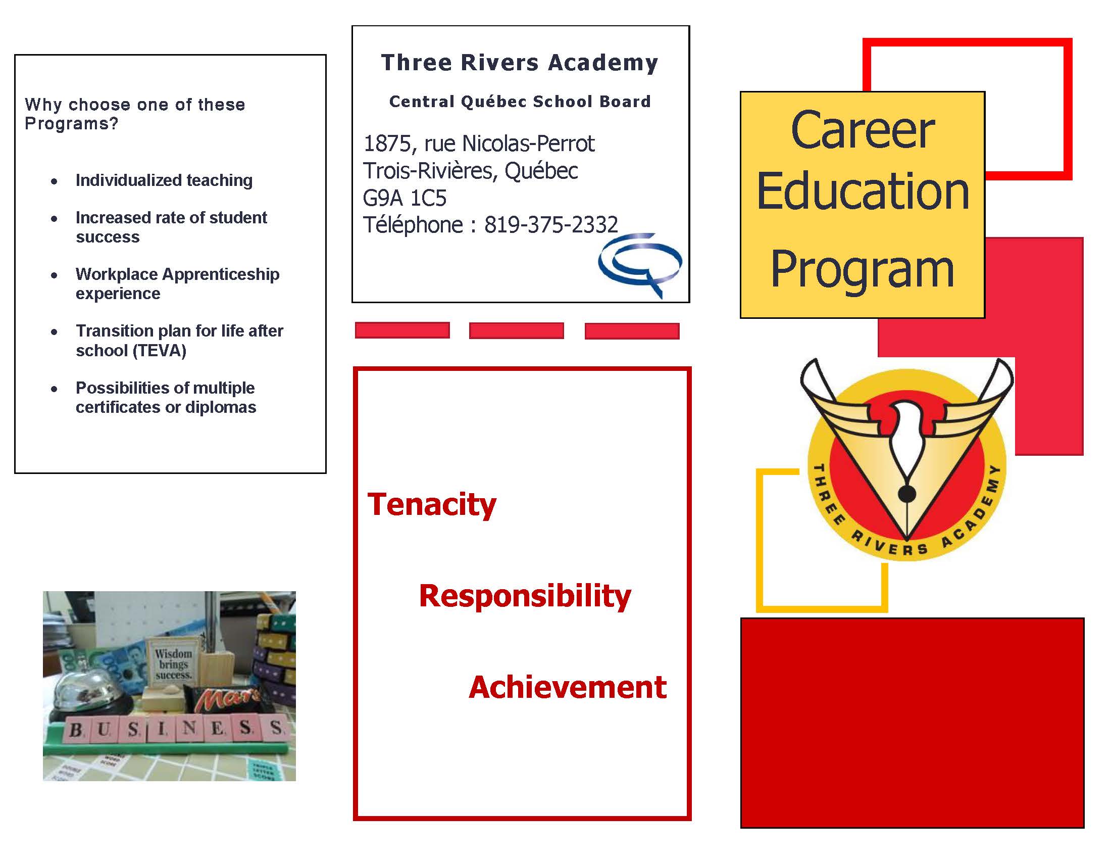 Three Rivers Academy has implemented a Career Education Program for students who are planning on furthering their post univeristy deploma whether collegial or vocational , because we believe that the future of every child matters.