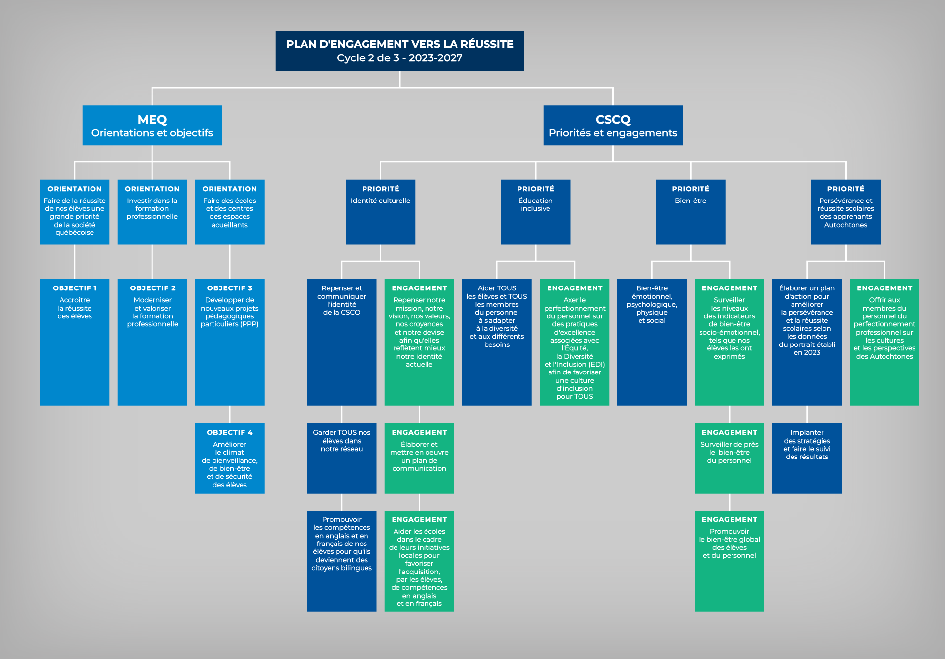 En conformité avec le mandat décrit aux articles 207 à 209 de la Loi sur l’instruction publique, la CSCQ s’engage à :