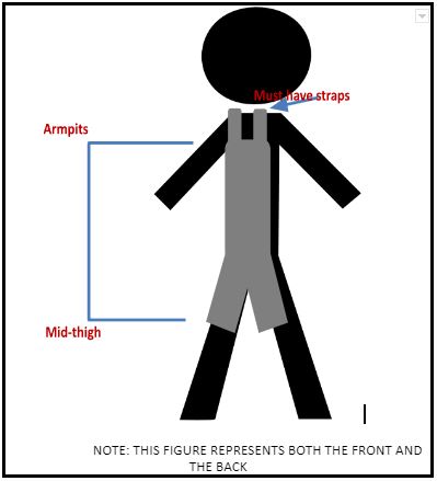 La longueur minimale des shorts, des jupes et des robes est à mi-cuisse.